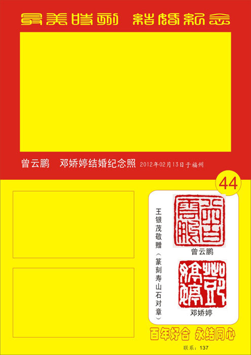 曾云鹏 邓婷婷 结婚纪念照 2012年02月13日于福州市 (本印谱十年后结集出版)