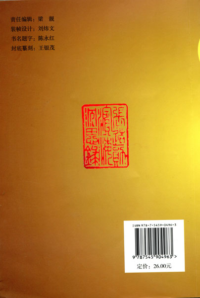 南京军区驻榕某部正团职(开国老将军)秘书、上校王银茂,这位著名的军旅篆刻家的传奇之外,不仅在于其风格苍老厚重、布局精巧、豪放潇洒,也不仅是作品之多(报刊发表和义务治印近万方),而是其“为全军将帅治印第一人”。此次精心创作的封底篆刻,又为本书增加了亮色。