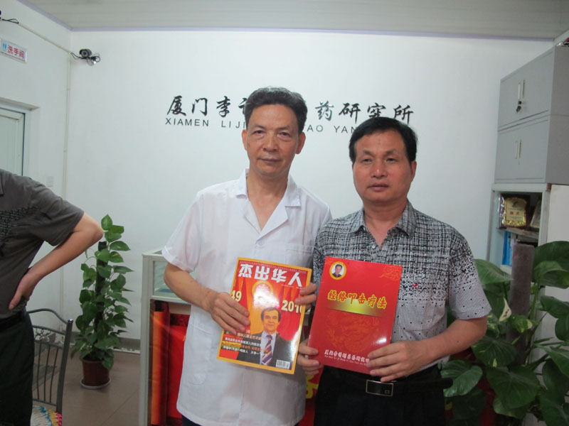 1. 2012年6月12日,著名书法家李桂强、王银茂一行到厦门拜访经络奇人李计划 。 图为李计划为病人治疗