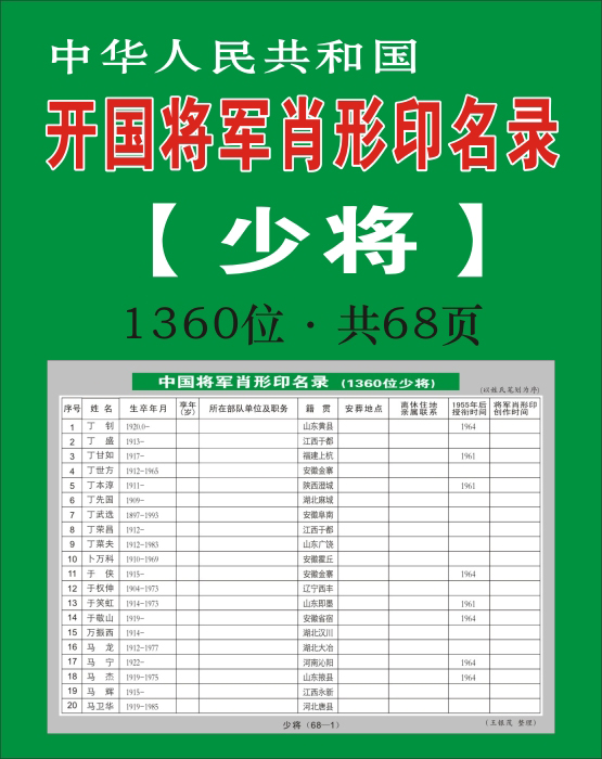 20.开国少将肖形印【401—500位】 21页—25页 共68页(首发时间:2012.01.01)最近增补内容时间见下