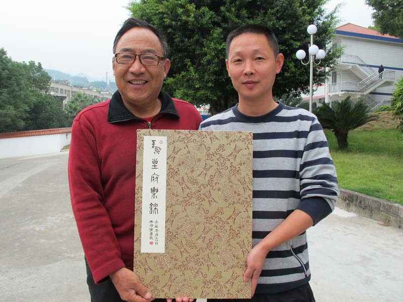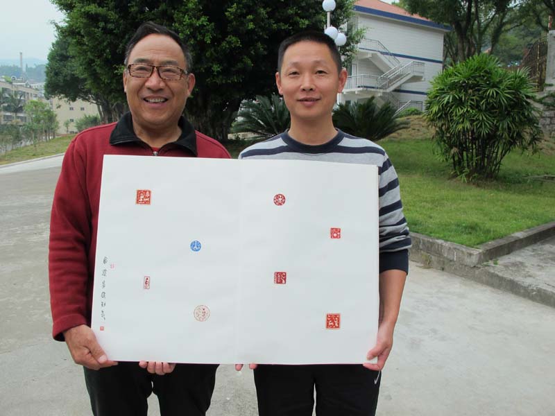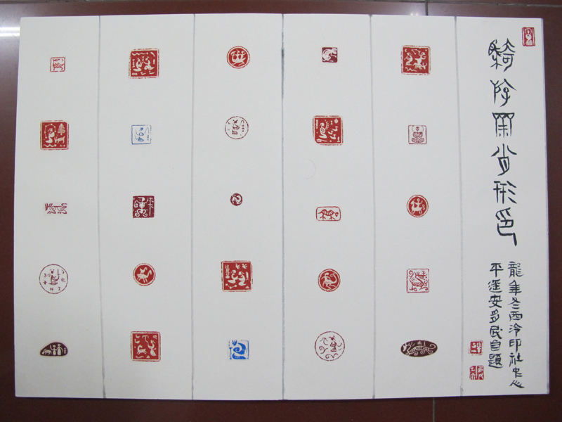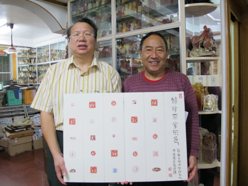 安多民大师为银石斋制作《骑游斋肖形印》印屏并留影