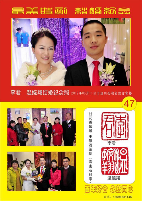 李君 温婉翔 结婚纪念照 2012年03月11日于福州西湖宾馆贵宾楼
