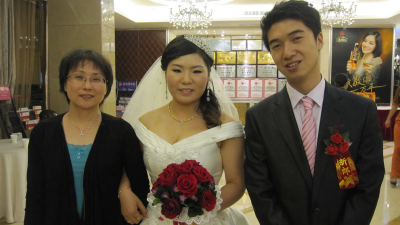 左起:婶婶林捷、新娘胡美芳、新郎刘用喃