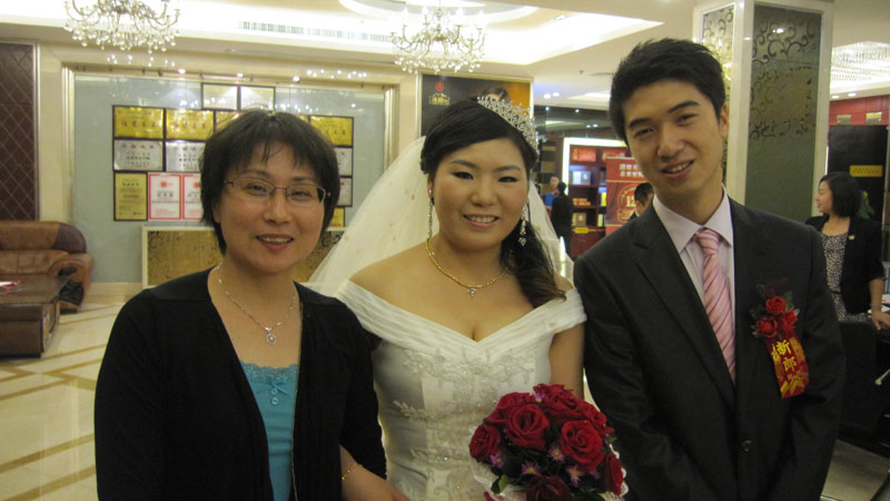 与新郎、新娘合影留念