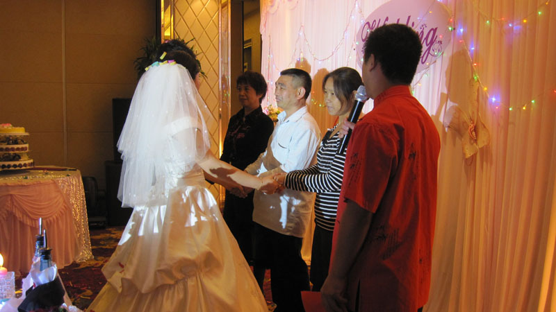 新郎、新娘互戴戒指,永结同心,白头到老