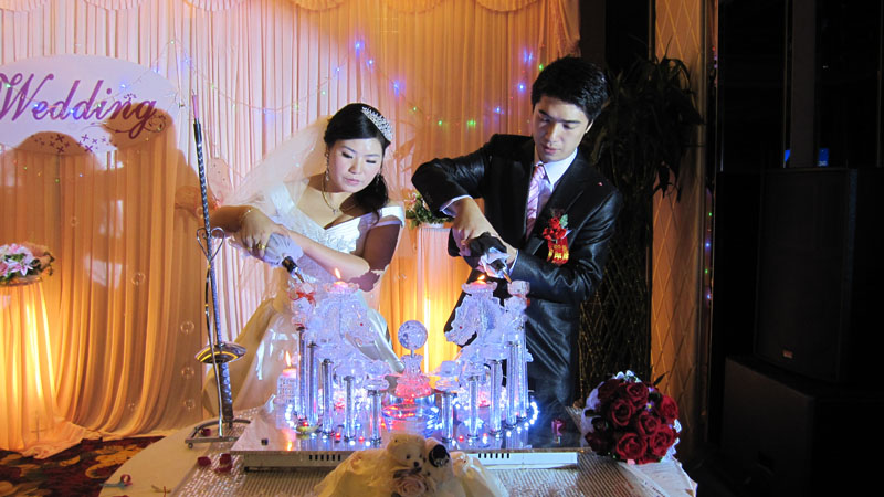 2012年11月5日,新郎刘用喃、新娘胡美芳手捧鲜花,喜结良缘