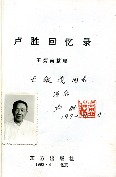 卢胜将军赠书王银茂留念