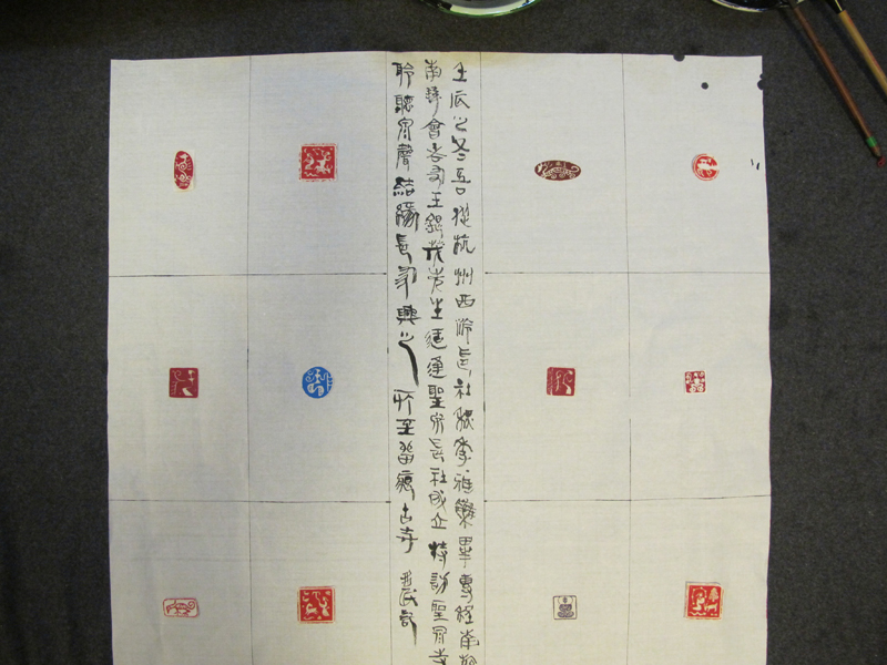 安多民大师为印社创作印屏:壬辰之冬 吾从杭州西泠印社秋季雅集毕 专程南游会老友王银茂先生 适逢圣泉印社成立特访圣泉寺 聆听泉声 结缘印友 兴之所至 留痕古寺 多民记