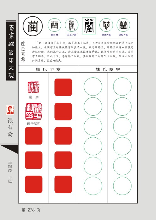 56.【赖卓蔺屠蒙】276页-280页 主编:王银茂《百家姓篆印大观》(首发时间2011.12.25)