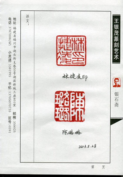 林捷凌、陈璐璐 (王银茂篆刻2013.05.27)