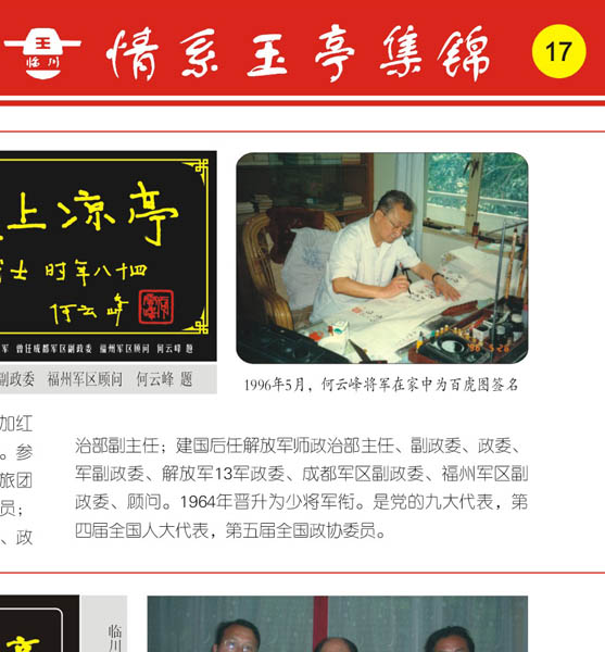 赵华青图片介绍:1.赵华青 原福州军区副司令员(1964年被授予少将军衔) 2.临川墩上凉亭 (齐鲁老兵 赵华青题) 3.赵华青将军(中)在家中与临川教师王育德(右)合影