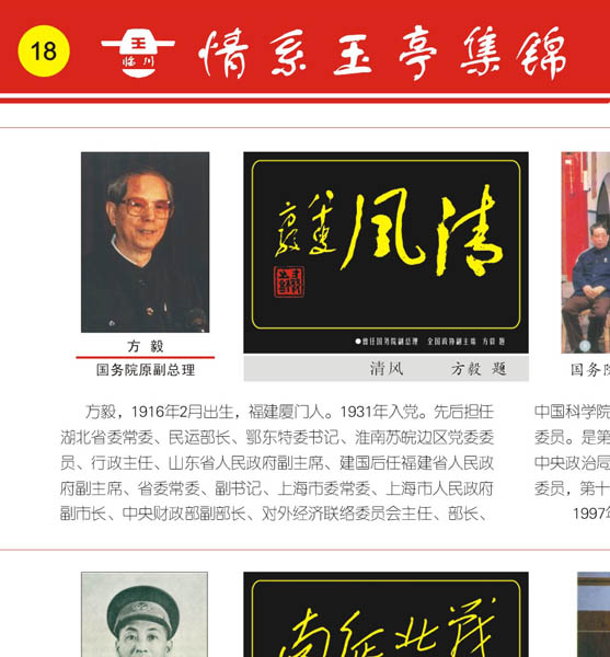 《凉亭外匾》方 毅图片介绍:1.方毅 国务院原副总理 2.清风 (方毅题 ) 3.国务院原副总理方毅(前排右四)与福州知名书画家合影
