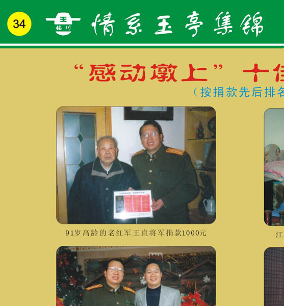“感动墩上”十佳能人志士 图片介绍(按捐款先后排名):1. 91岁高龄的老红军王直将军捐款1000元 2.江西省原省委书记程世清及子女捐款1000元