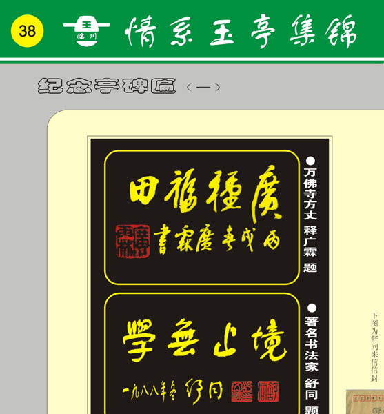 038【第二·部分】第38页(纪念亭牌匾—名人合照) 主编:王银茂 《情系玉亭集锦画册》