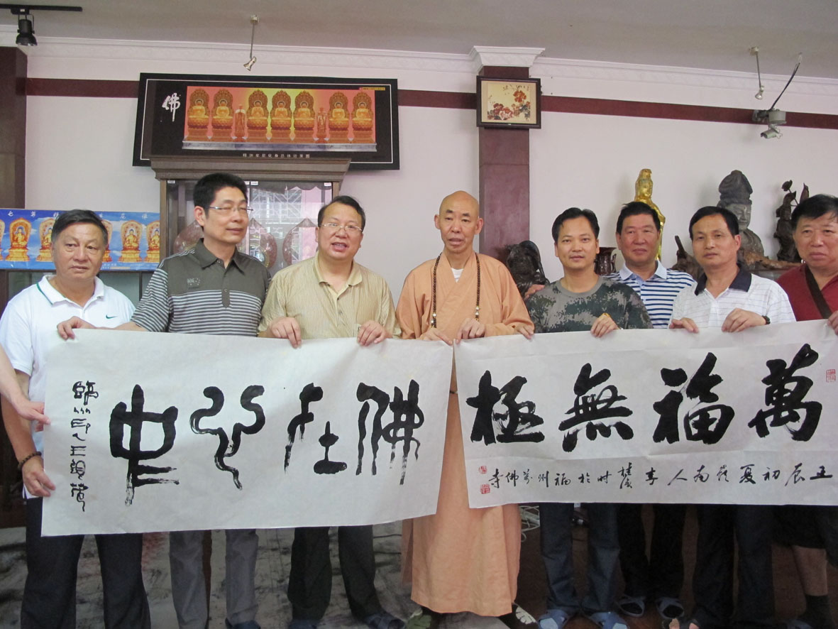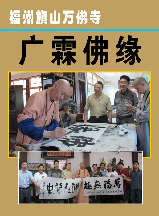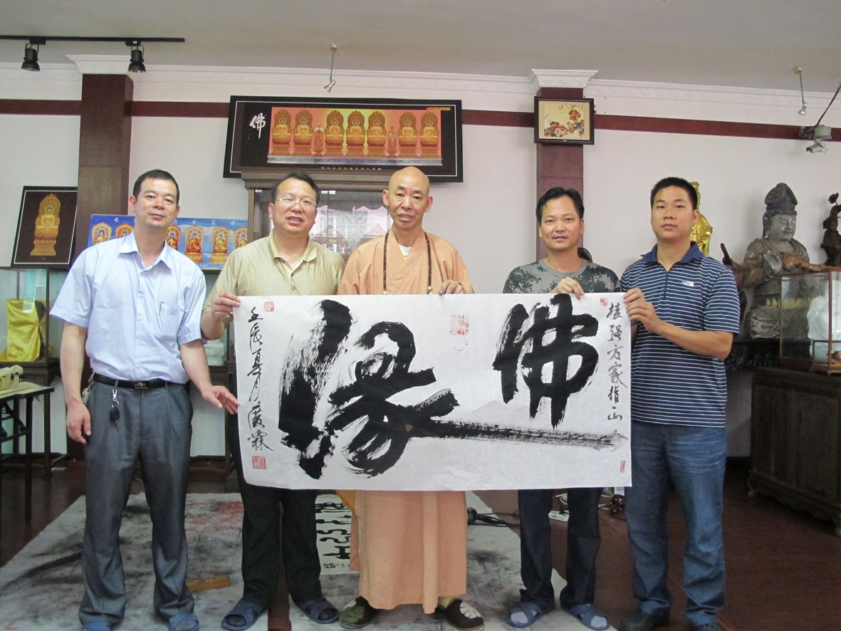 万佛寺广霖大师赠送《佛缘翰墨》 左起:王银茂、李桂强、释广霖、林荣欣