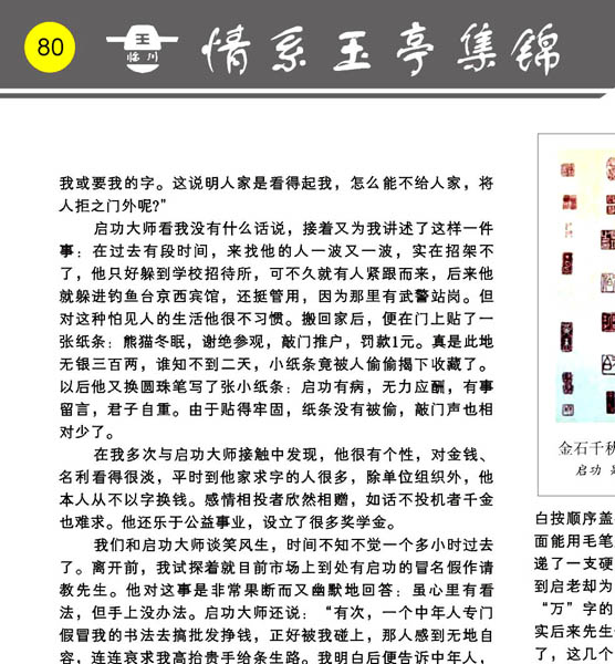 080【第五·部分】第80页(永恒的纪念—泰斗启功一) 主编:王银茂 《情系玉亭集锦画册》
