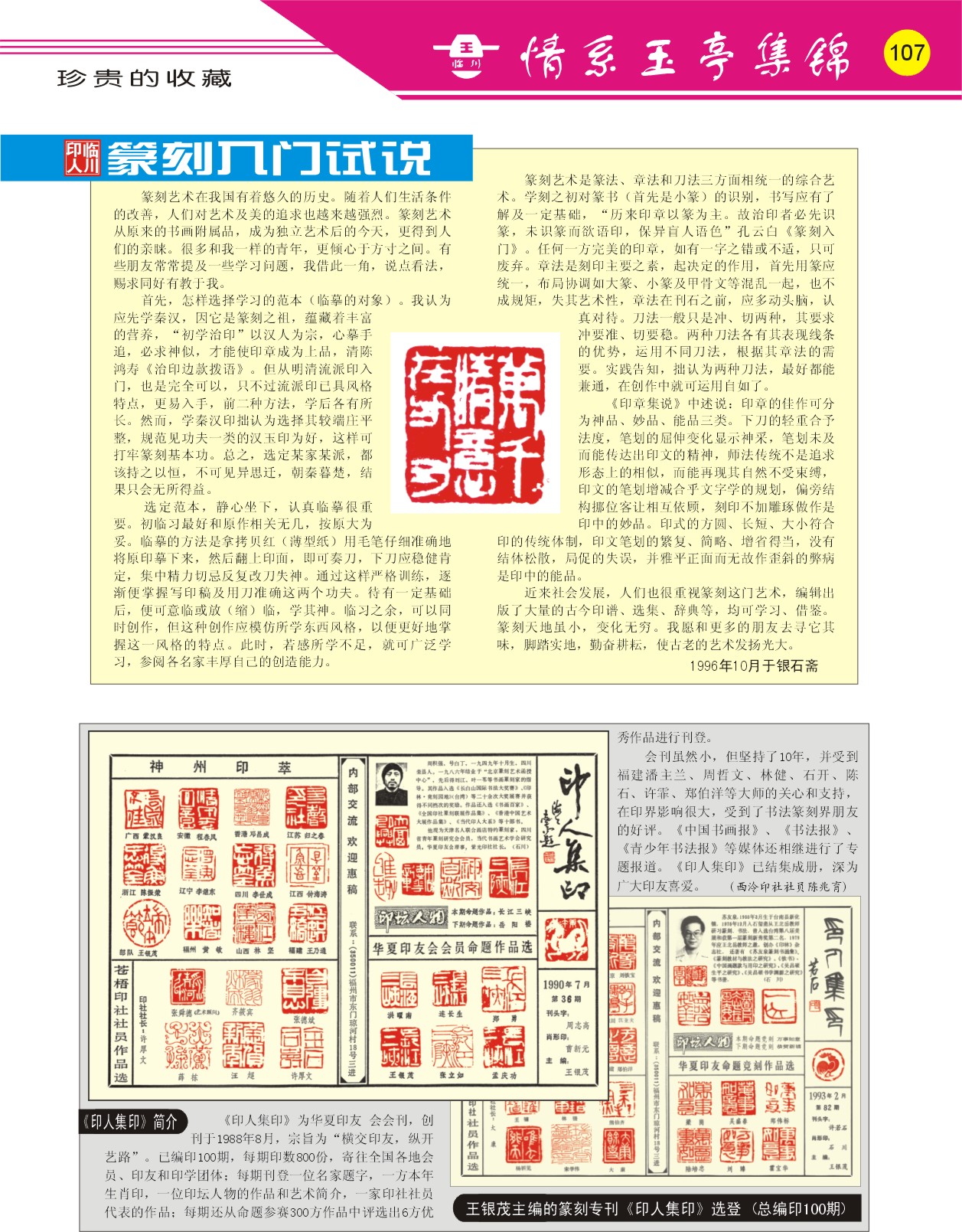 107【第六·部分】107页(珍贵的收藏—王银茂篆刻) 主编:王银茂 《情系玉亭集锦画册》