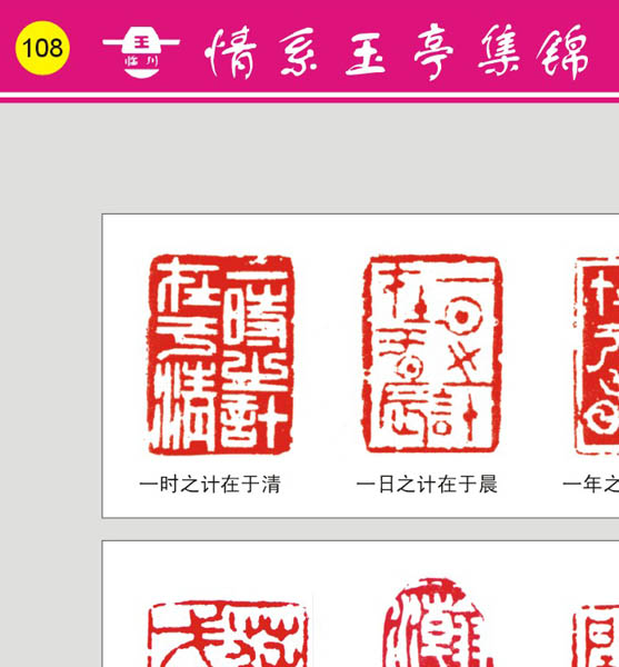 108【第六·部分】108页(珍贵的收藏—王银茂篆刻) 主编:王银茂 《情系玉亭集锦画册》