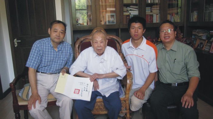 王直将军与小儿子王建炎(左一)、秘书王银茂及王银茂儿子王川文(右二)留影