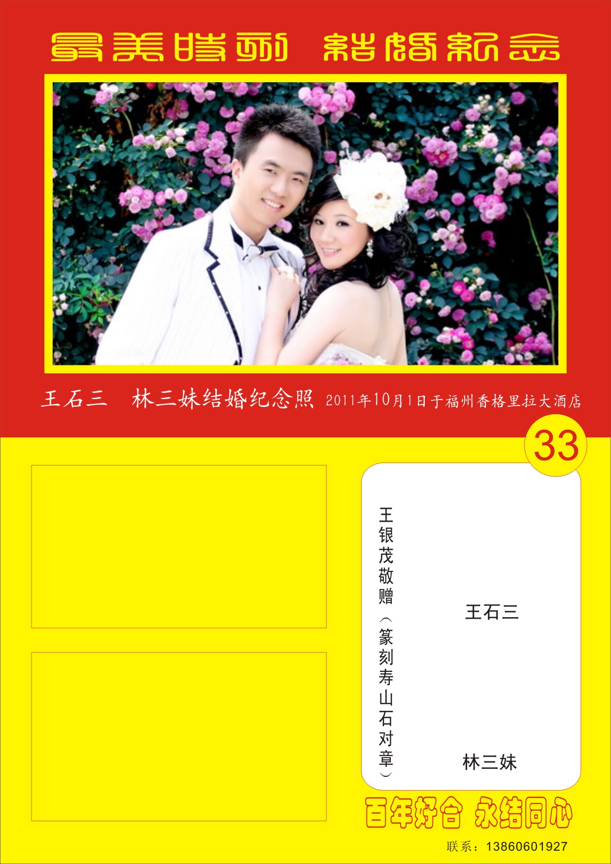 《结婚百对印谱》(33) 王石三 林三妹结婚纪念照 2011年10月1日于福州香格里拉大酒店