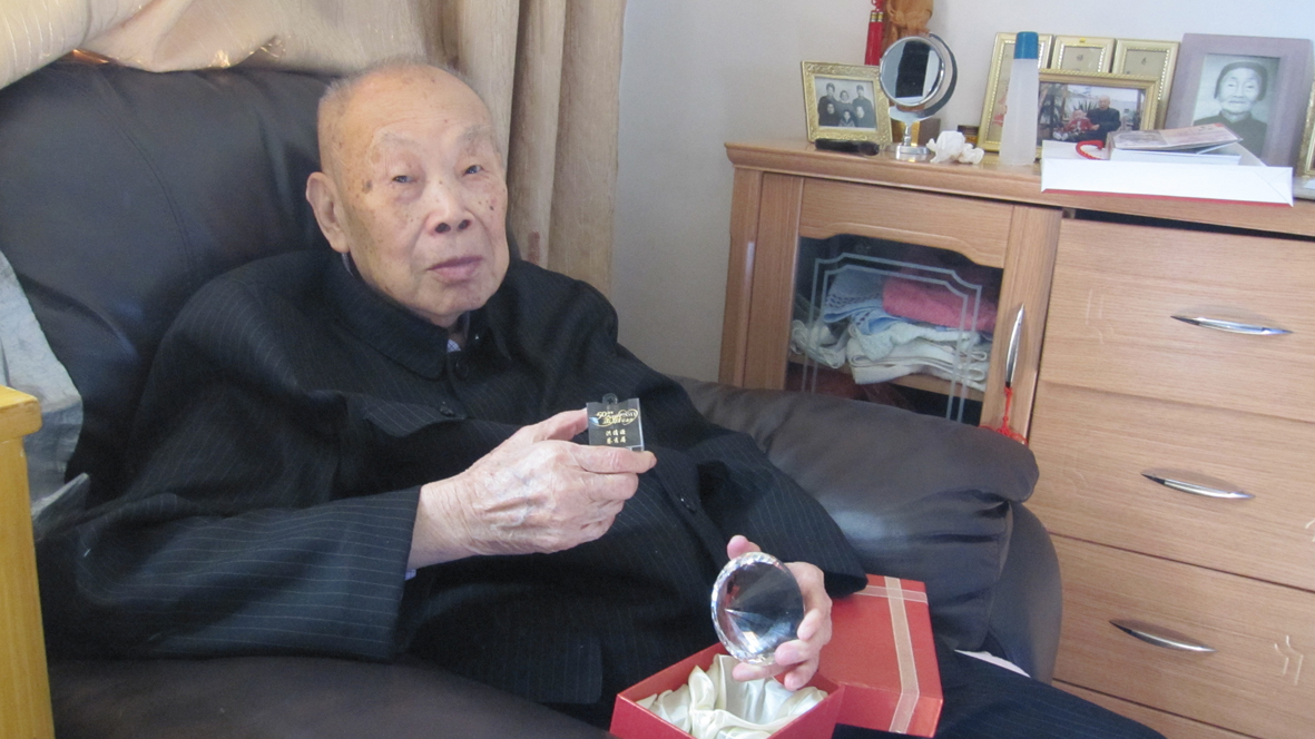 老红军、开国老将军、原福州军区副政委、96岁高龄的王直老首长得知喜讯后,特祝贺洪清源、蔡秀屏夫妇金婚幸福、美满快乐,白头到老,并手捧金婚水晶纪念品留影