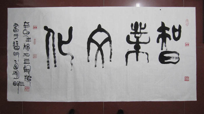 ●●●2013年6月29日,"学篆七姐妹"书法篆刻艺术学习班在福州环桥大酒店举行开学典礼。●●●老红军、开国老将军、著名书画家王直将军(98岁)题字“天道酬勤“祝贺。原福州军区老红军王玉清,老八路叶汉林、何庆宇等老首长以及中国海峡会副会长张铭清教授等军政老领导,在学员“七姐妹“上门拜访时,送画册等表示支持并祝贺。●●●福建省原人大副主任宋峻,省统战部副部长游嘉瑞,福建省军区政治部副主任杨永让,省民政厅处长王和炎,国鼎安防集团老总贺云翔,厦门国际美容师周江雁,龙岩企业家钟瑾,平潭林炳耀等到场讲话祝贺,并为七姐妹颁发学员金牌、银牌匾。●●●著名书画家陈初良、高季笙、 陈泰宏、黄光辉、王瑞、曾光明、黄维国、何红、李清辉、吴德才、薛少明以及闽侯荆溪十位少儿书画爱好者葛锐義等到场挥毫泼墨。●●●圣泉印社副社长兼秘书长、军旅篆刻家王银茂现场组织并担任授课老师。“学篆七姐妹“有:甘花香、 杨鹃、王美垛、卓慕清、曾颖、汪兰君、王小曼。跟学者有:温丽君、常弘、许绍玲、 滕琳、黄南芬、陈昱、 宽闻、 周江雁、林捷、吴艳燕、 邹琴、宋水琴、 康丽、秦小淇、蔡丹、卓雅庭、文明、王曼颖、张颖、郑磊超、 王亚文、 王川文等。●●●庆典活动中,举行了名家作品展、书画笔会、 晚宴酒会,同时还举行了名家为“学篆七姐妹“每人赠送书画作品、篆刻印章、学篆制式工具箱等赠送仪式。学员杨鹃担任主持人,甘花香代表“七姐妹“学员上台讲话。●●●活动下午三点开始,晚上九点结束,参加庆典人员八十余人。●●●6月30日,“学篆七姐妹”艺术梦组合班来到福州圣泉寺举行第一场书画笔会。(石川)