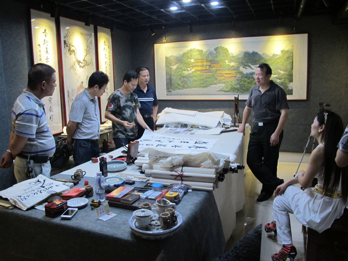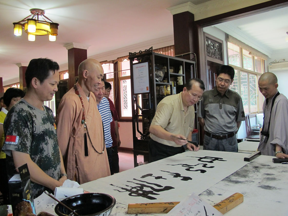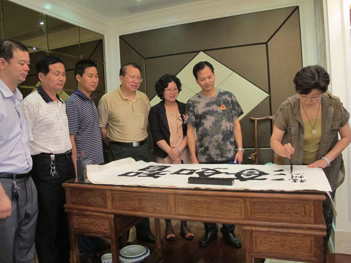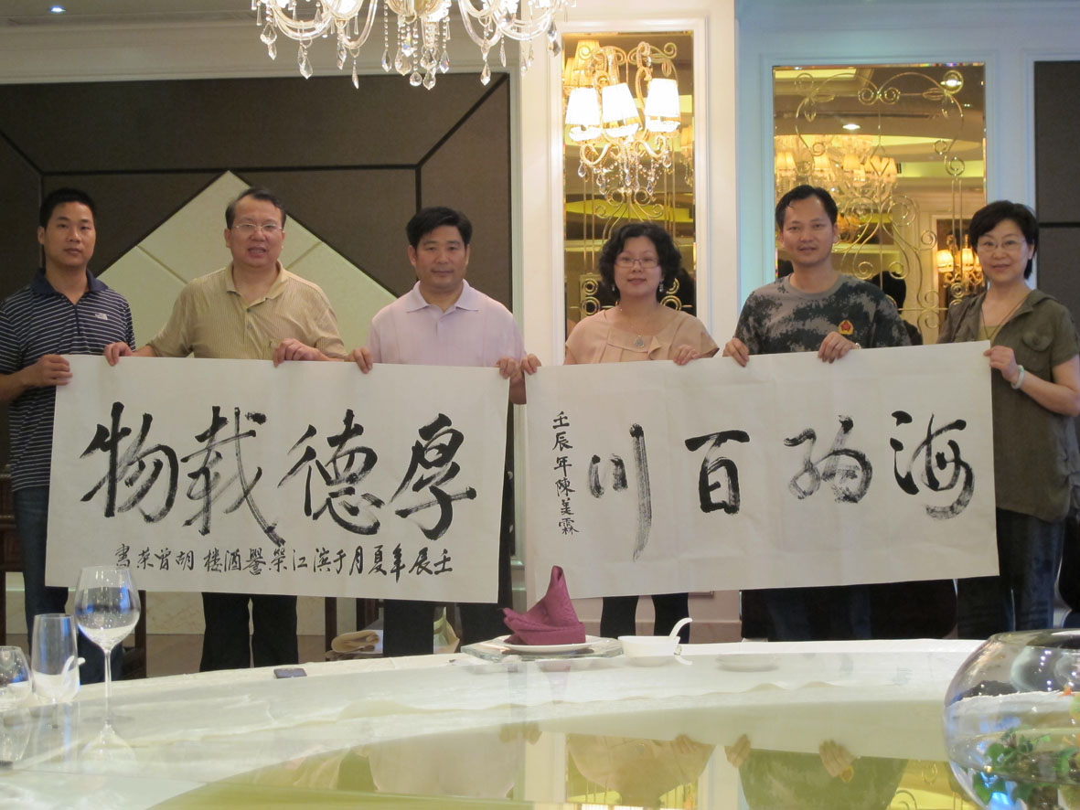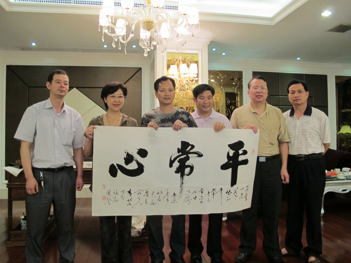 27. 2012年6月10日,书法家们一行在厦门进行书法创作 右二为厦门市收藏家协会主席丁建南