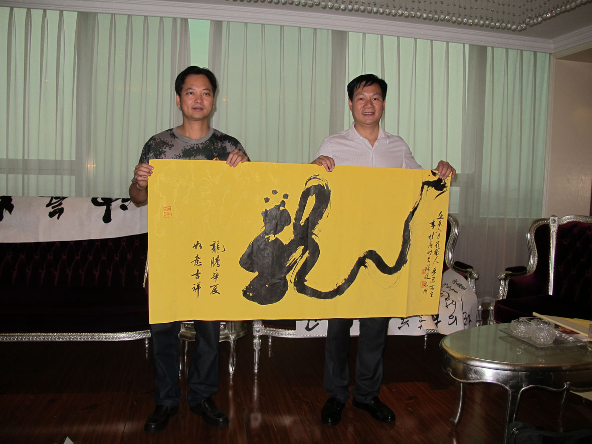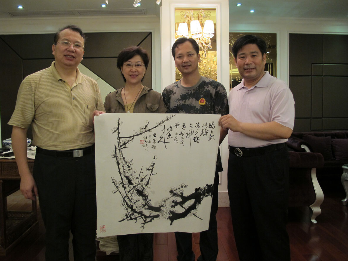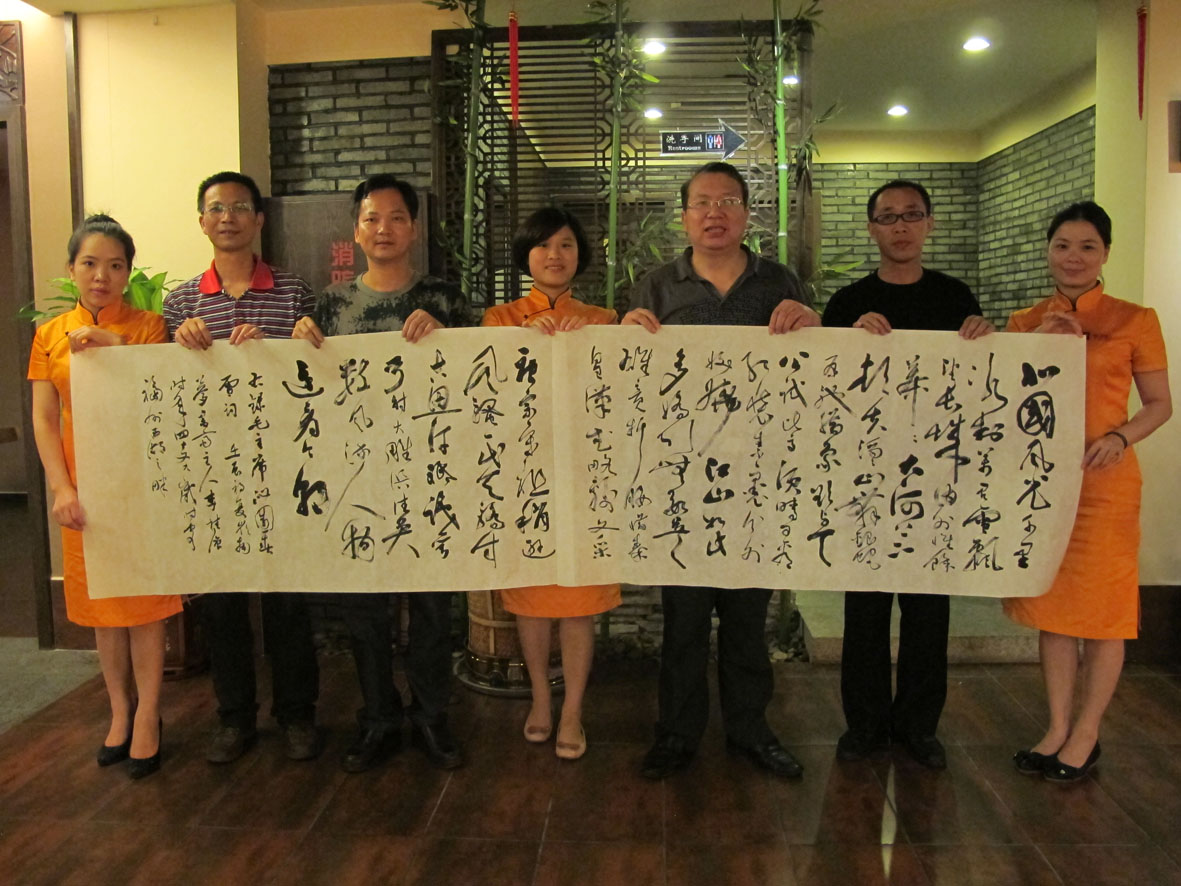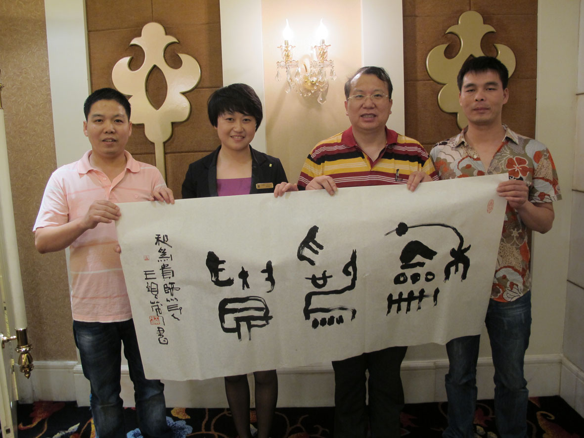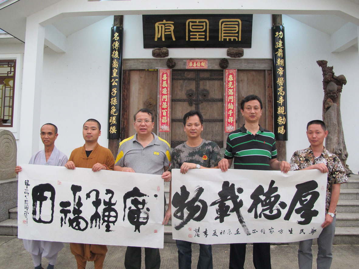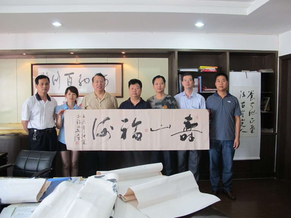 27. 2012年6月10日,书法家们一行在厦门进行书法创作 右二为厦门市收藏家协会主席丁建南