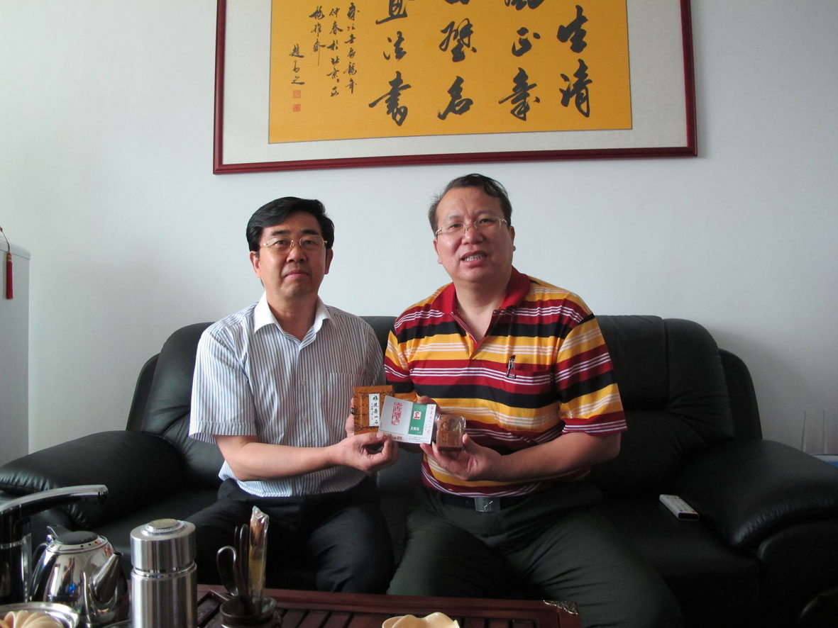 21. 2012年6月9 日,石狮市政协主席丁家全与军旅书法篆刻家王银茂留影