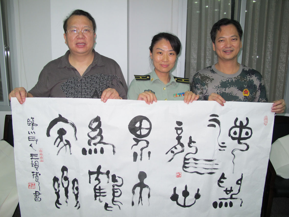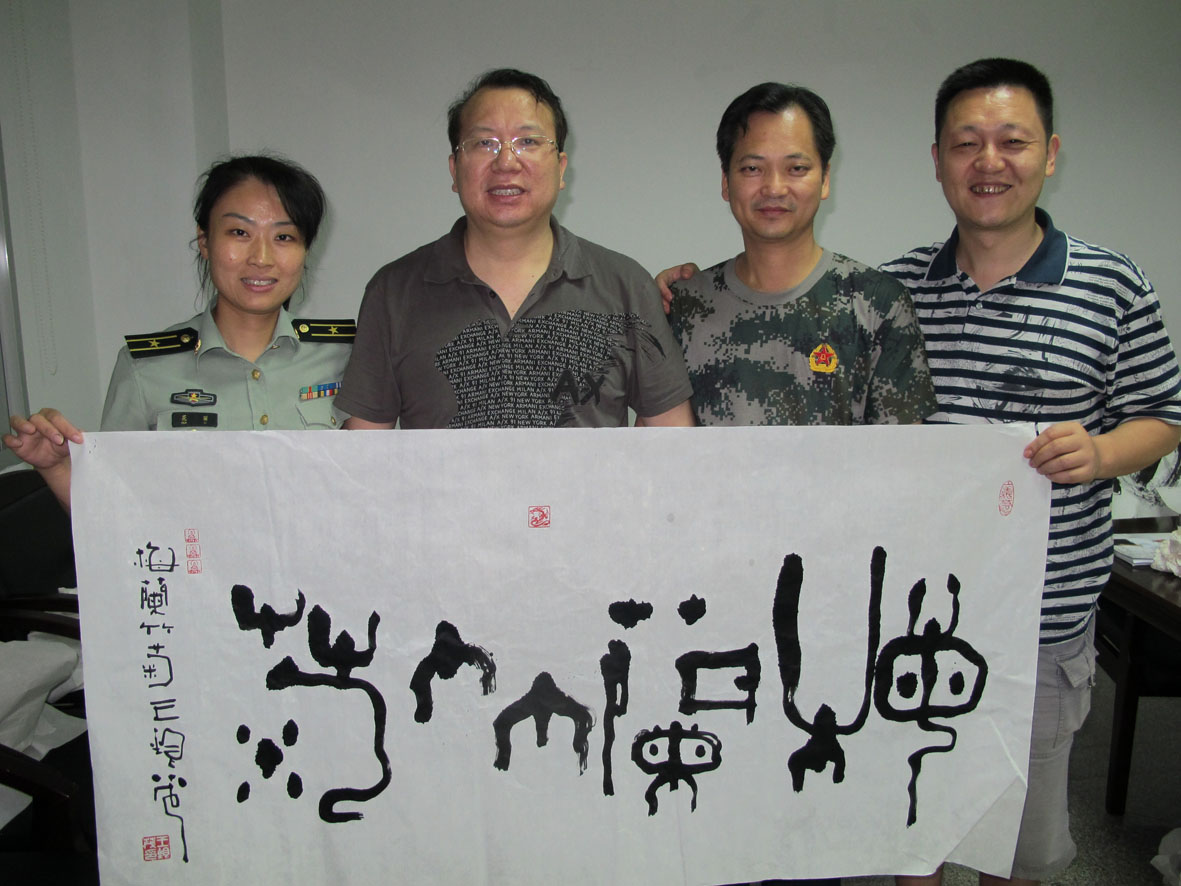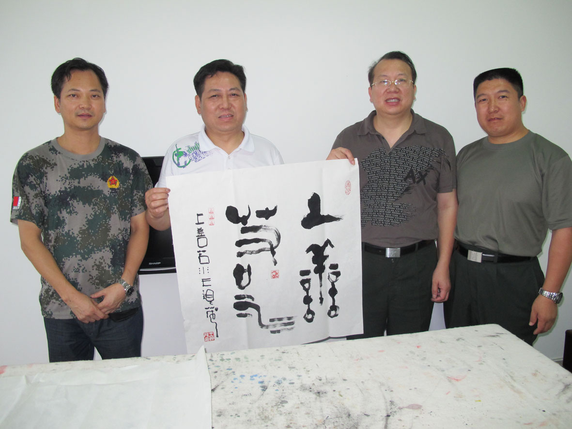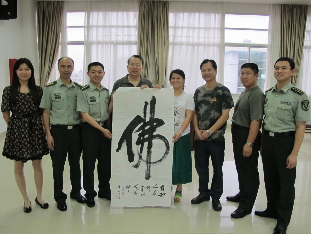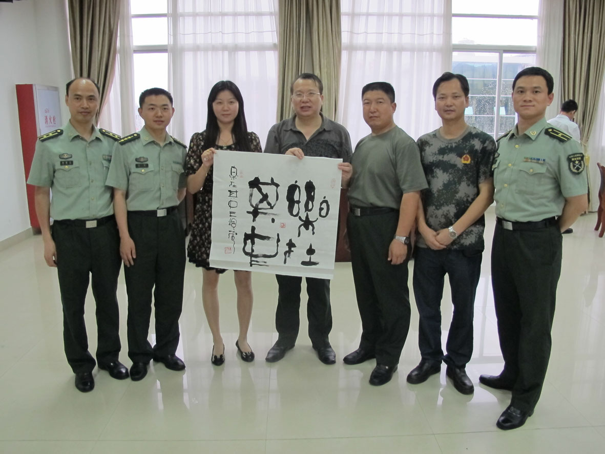 1. 2012年6月5日, 与军旅著名书法家、福建省军区预备役师政委兼政治部副主任杨永让大校留影 左起:邹训良、胡建斌、刘志刚、杨永让(书法作者)、王银茂、王孟军、王石平