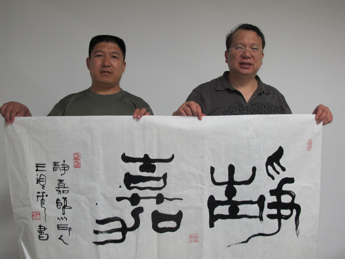 3. 与三明市委常委、宣传部长,著名书法家曾祥辉留影 左起:李桂强、曾祥辉(书法作者)、王银茂