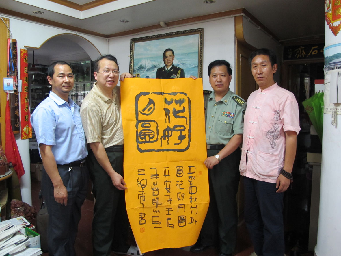 2. 与军旅篆刻家王银茂留影 左起:王石平、王孟军、刘首长v、王银茂(书法作者)