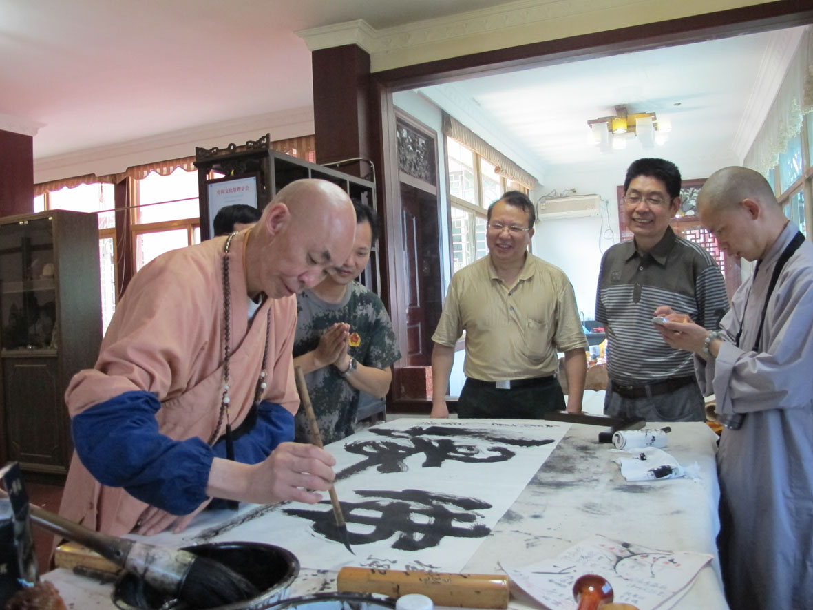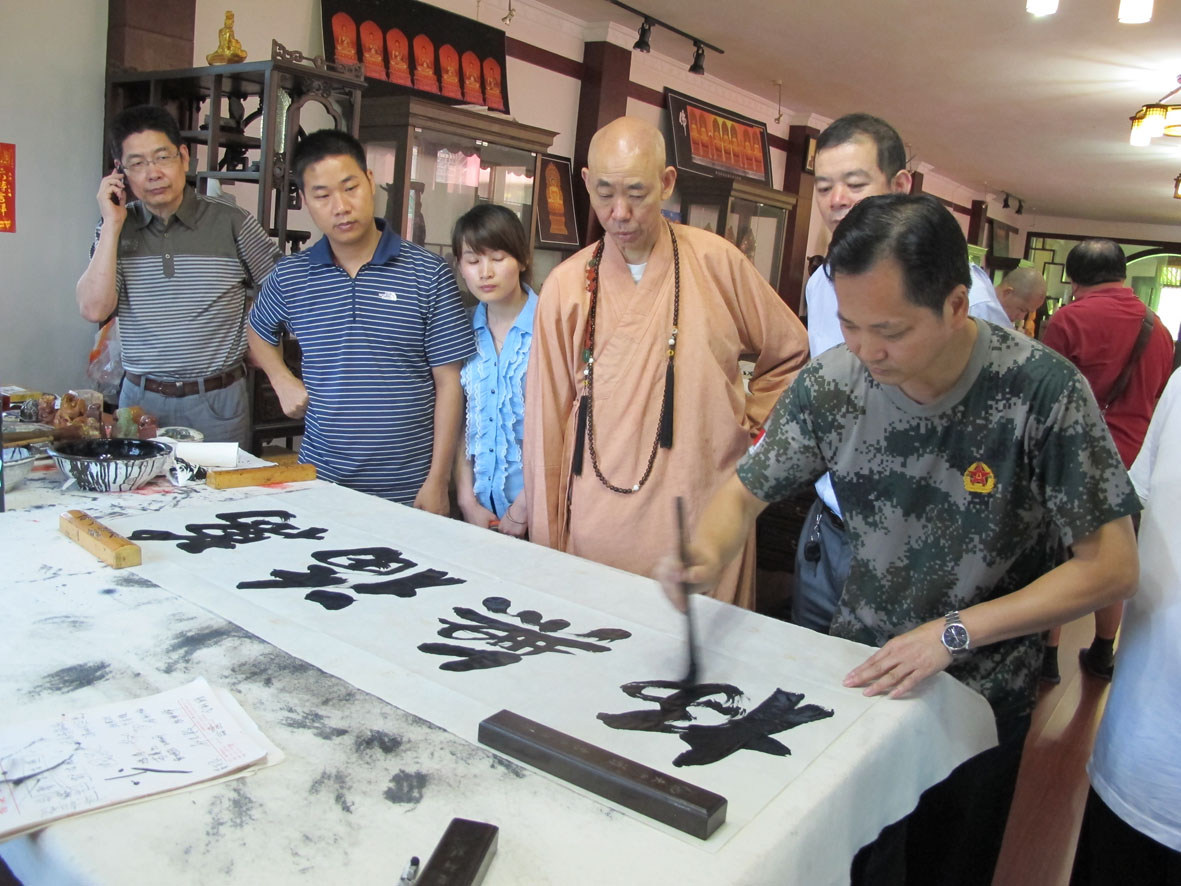 8. 万佛寺广霖大师正在挥毫题写:佛缘