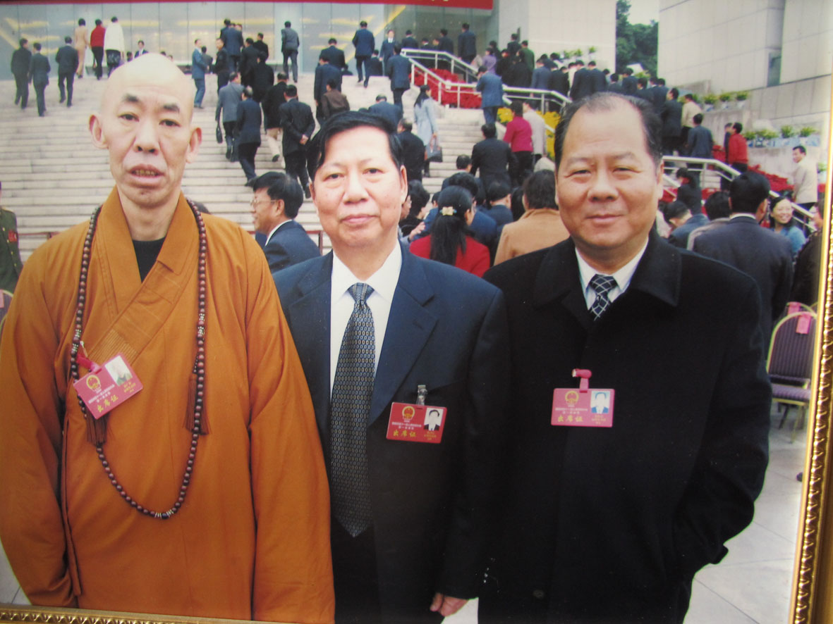 10. 左起: 万佛寺方丈释广霖、省委原组织部长陈营官、福州市原市长郑松岩