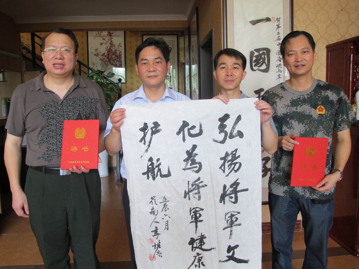 29. 在厦门前埔南路中华将军书画交流协会留影 左起:王银茂(中华将军书画交流会副主任)、黄仁福(中华将军书画交流会主任)、黄副秘书长、李桂强